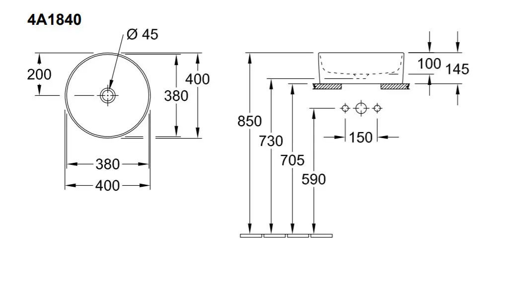 - afmetingen: diameter 400 mm, hoogte 145 mm